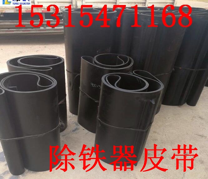 除铁器卸铁皮带主要是安装在各个型号的电磁、永磁自卸式除铁器上,当输料皮带上的散状物料经过自卸除铁器底部时,混杂在物料中的铁磁性杂质在除铁器磁芯强大的磁场力作用下被吸附到除铁器卸铁皮带上,由不停运转的卸铁皮带将吸附住的铁杂质刮出,卸进集铁箱,从而达到自动连续除铁的目的。无需人工清理,实现了自动化除铁。