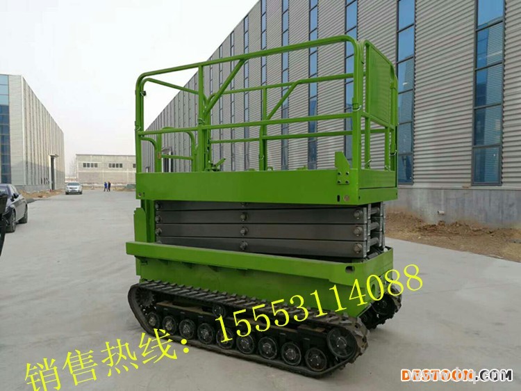 2、有底座、臂架和工作台三部分组成。底座采用相应强度钢板焊接而成;臂架为剪撑铰链式垂直升降。