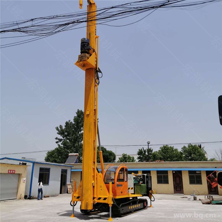 履带式长螺旋打桩机主要用于楼房地基的打桩,可以根据工程要求定制钻杆尺寸。使用液压行走钢制履带,适应于大部分复杂地形。