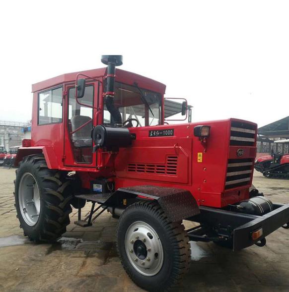 四驱拖拉机是专为运输专业户开发的轮式拖拉机,拉的多,跑的快,爬坡能力强,省油,各零部件坚固耐用。配装LR系列直喷式柴油发动机,5+1挡变速箱, 高车速为50.8公里/小时;底盘传动系和车架等主要受力零部件均采用久经考验的东方红履带拖拉机和东风汽车同样结构,承载能力强,使用维修方便,配件易购;驾驶室增设简易卧铺,以减轻驾驶员长途运输的疲劳。 1、主要功能 轮式拖拉机是专为运输专业户开发的轮式拖拉机,拉的多,跑的快,爬坡能力强,省油,各部件通用性高、坚固耐用。 2、主要性能特点 1)配装一拖公司LR105系列柴油发动机,低噪、低排放、节能;1000-4配装膜片弹簧式主离合器,结合/分离平稳、结构可靠,免调整。 2)5+1档变速箱,1000-4改进调整了传动系, 高车速可达50公里/小时。 3)底盘传动系和车架等主要受力零部件均采用久经考验的东方红履带拖拉机和东风汽车同样结构,承载能力强,使用维修方便,配件易购。 4)驾驶室增设简易卧铺,以减轻驾驶员长途运输的疲劳