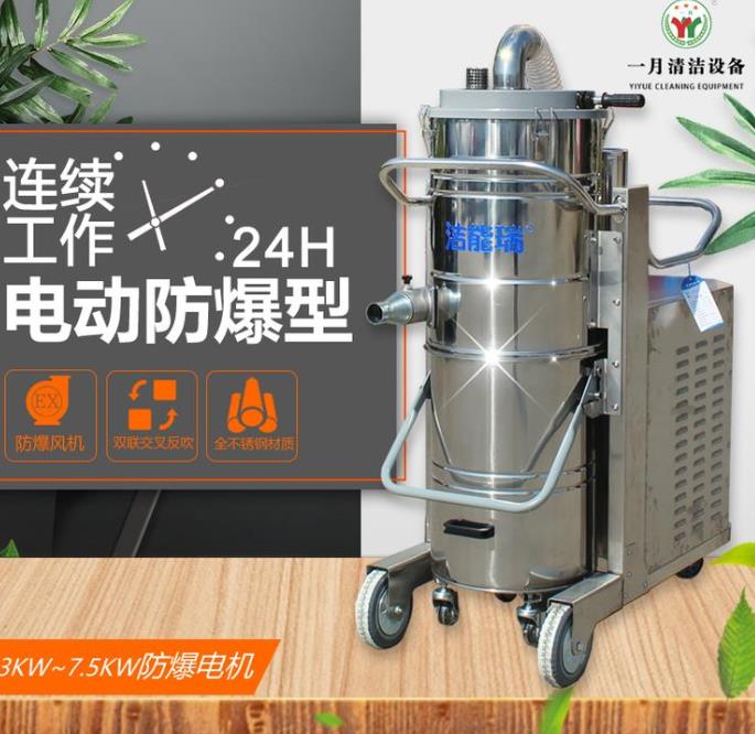 洁能瑞粉尘防爆大功率工业吸尘器是一款三相电,具有5.5KW大吸力和120升容量的电动防爆工业吸尘器。整机获得防爆合格证书认证(证书编号:CNEx19.5529x),采用不锈钢材质,结实好用,50MM口径45CM宽度金属吸尘扒吸尘速度快,上下分离桶结构。洁能瑞防爆工业吸尘器专利切换清理过滤器技术,不用停机通过切换滑杆就能清理过滤器粉尘,可连续24小时工作。洁能瑞防爆工业吸尘器有21600平方厘米的过滤系统,适用于清理工作非常繁重的工厂。可吸铁钉、铁屑、钢珠,石子、沙粒、水泥灰尘 、固液混合物及少量液体或粘稠等物质,适用于机械制造、金属加工、电子、陶瓷、化工、食品、医药等多种加工场所,能与生产线或生产设备配套使用。