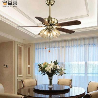 品牌:美式全铜吊扇灯 复古餐厅风扇灯木叶 家用大气电扇灯饰 宝益莱