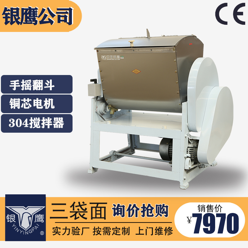 HWT12.5I、20I、25III、50III、75I型和面机主要有机架、面斗、操纵机构、传动机构等几部分组成,手动翻斗,倒顺开关直接控制电动机正反转,操作方便,HWT12.5I、20I、25III、50III、75I型和面机采用电机内置式结构,占用空间小,结构紧凑。