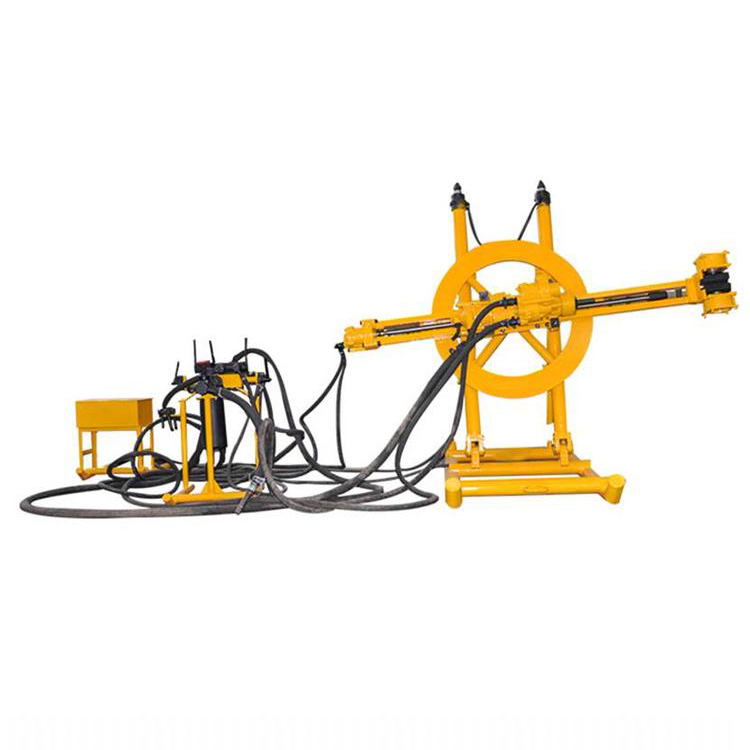 YGZ90导轨钻机是以压缩空气为动力的中深孔凿岩机具,与CTC14.2型双机采矿钻车或TJ25型圆盘式钻架配套。以压缩空气为动力的中深孔凿岩设备主要用于井下采矿场接杆钻凿上向扇型或环型中深孔的石方工程。适用于巷道断面为2.5*2.5m到3m*3m钻孔直径50-80cm,有效孔深30m。采用直径65mm的十字型合金钎头在F12-14级矿岩中,平均纯凿岩速度可达680mm/分。该钻架结构简单,拆运方便,工作安全可靠,效率高。