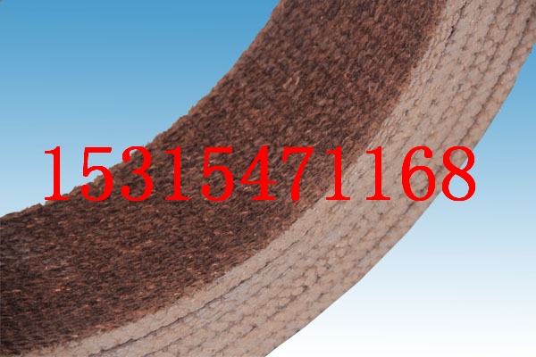 石棉编织型刹车带选用含有2根铜丝的石棉线条经过先进机械设备整体编织,浸渍特别配制的高分子树脂,经高低温等工艺定型而成。产品摩擦性能好、磨损率低、抗拉强度高、耐高温、使用寿命长,具有优良的防油性及防冲击性。