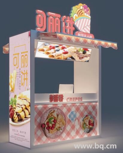 恋茉可丽饼:不仅干净整洁而且全因其超高的颜值足以成为整个夜市最亮的存在,店铺形象经过精心设计,摊位具有超高人气,顾客乐于在网红打卡地点消费并合影拍照。