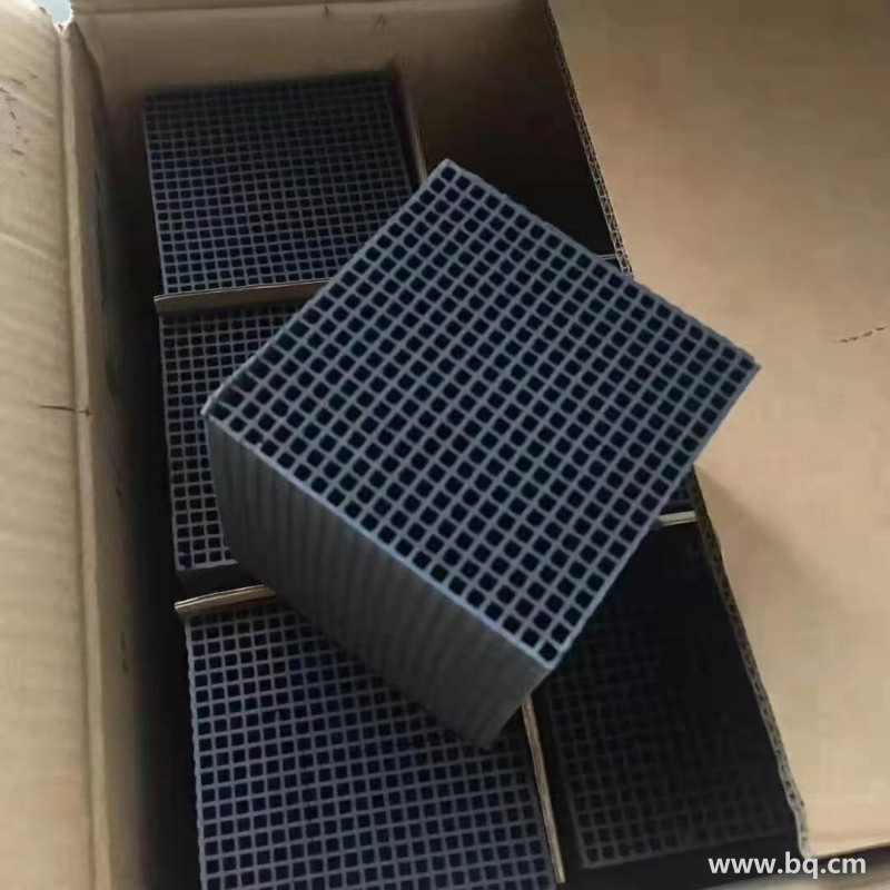 蜂窝活性炭主要采用煤质炭粉为原料,加工成型再经过高温活化而成。外形为蜂窝体,所被人们称做蜂窝活性炭。蜂窝活性炭是由50-70%活性炭,17-35%,13-25%高岭土经球磨、过筛、搅拌、榨泥、练泥、挤压成型、干燥、煅烧等工序加工而成。产品可分为耐水与不耐水两种。它的特点是:具有较大的比表面积,通孔阻力小,微孔发达,高吸附容量,使用寿命长等主要特点。 选用蜂窝活性炭吸附法,即有机废气与具有大表面的多孔性活性炭接触,废气中的污染物被吸附和分解,从而起到净化作用。 可根据不同用户的需求还可以订制成不同形状。
