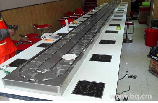 江苏汇犹可机械制造有限公司,是华东境内家有回转寿司设备加工资质的生产企业.寿司设备 回转寿司设备 寿司设备价格输送链板采用304不锈钢制造,具有美观、清洁、卫生,输送方向,速度任意可调,是各种自助火锅,自助早餐的新型时尚的设备。传动部分采用台湾产(城邦牌)2HP-1500W变频减速电机,速比1:100,变频器采用220V,2HP-1500W.SE系列,线速2-8米/分钟 可调。寿司线,回转寿司线,回转火锅线专为大中小型餐饮连锁企业量身定做,适应了饮食界推陈出新,适应了现代人对饮食新奇的追求,必会掀起都市饮食新潮。回转寿司设备均由以下部件构成 :台架系统、动力系统、输送链系统、供水系统 、轨道系统。设备主要采用304不锈钢及进口电机器元件等美观、卫生、耐用的材料制造。 我司输送带拥有以下特点:
